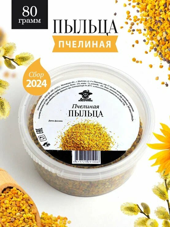 Пыльца цветочная натуральная 80 г, сбор 2024, пчелиная пыльца, обножка, сушеная ,пищевая, витамины