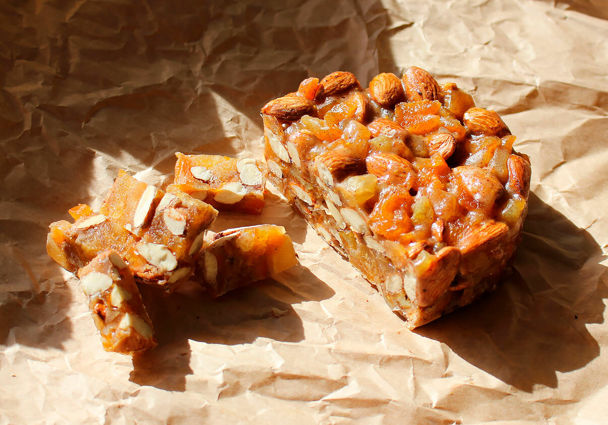 | Состав | Миндаль, дыня, апельсиновые цукаты, курага, мед, цедра апельсина, мука в/с, пряности. |