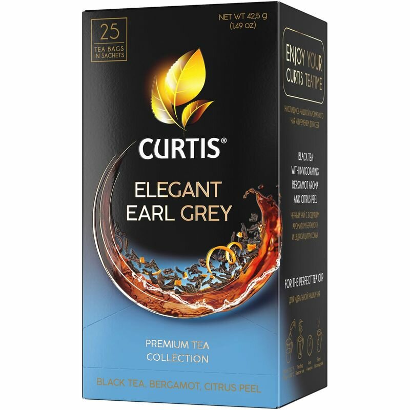 Чай черный Curtis Elegant Earl Gray с бергамотом и цедрой цитрусовых 25 пакетиков