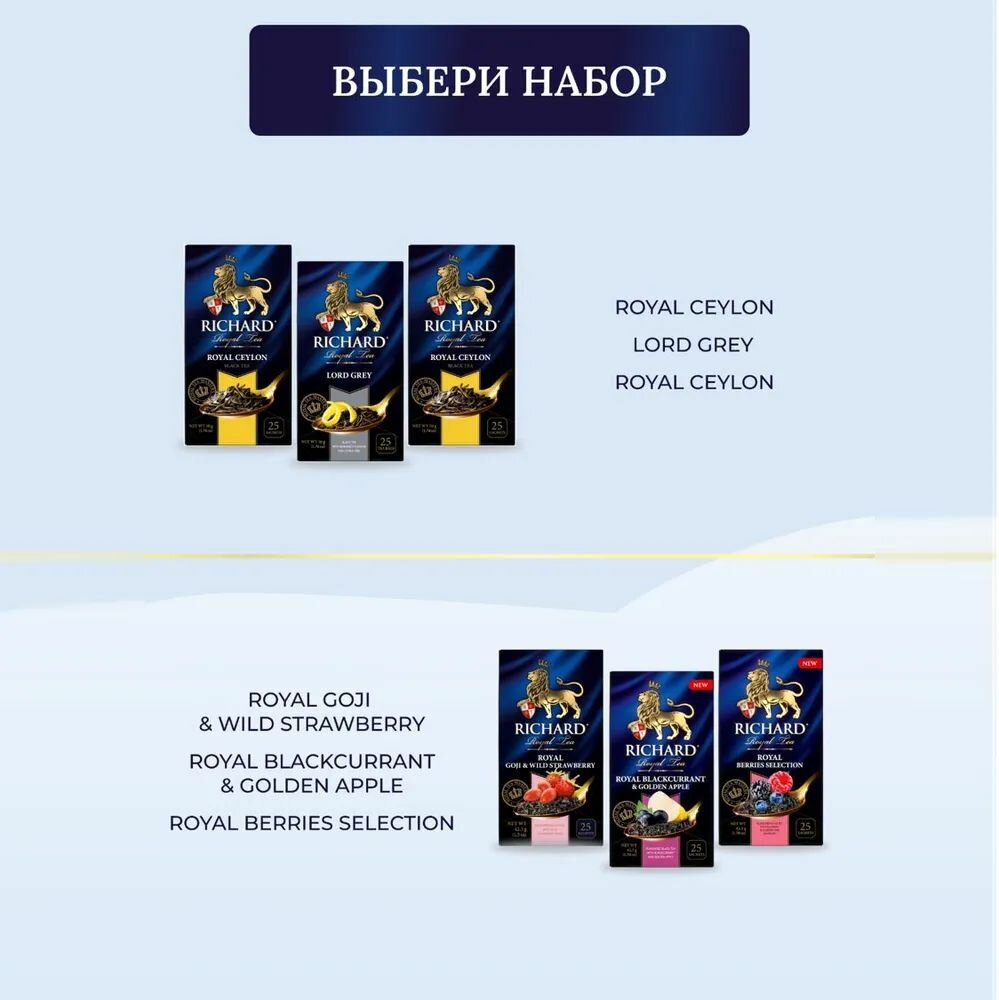 Чай Richard Royal BerriesSelection, Blackcurant & Golden Apple, Peach & Mint, набор ассорти 3 уп х 25 пак