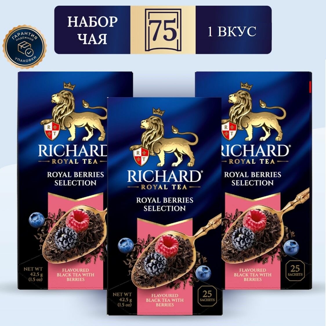 Купить Чай черный ароматизированный Richard Royal Berries Selection, набор 3 уп х 25 пак