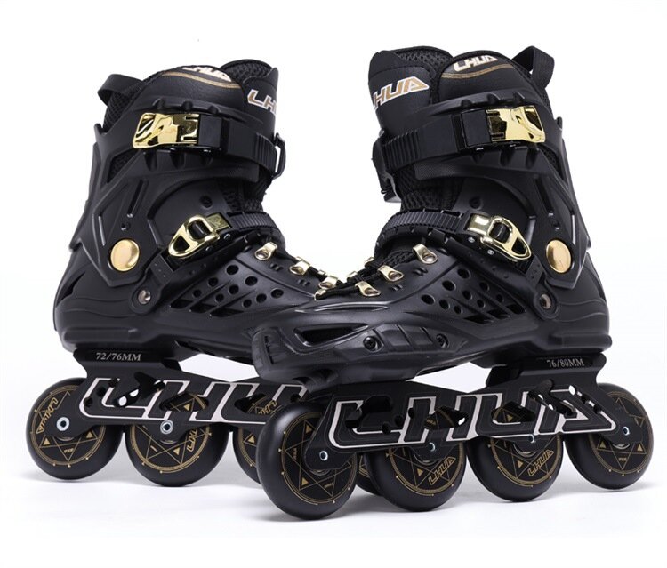 Роликовые коньки LHUA "Модная обувь", черно-золотые, для взрослых, размер 42