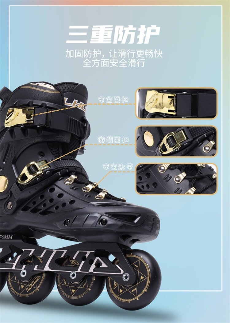 Роликовые коньки LHUA "Модная обувь", черно-золотые, для взрослых, размер 42