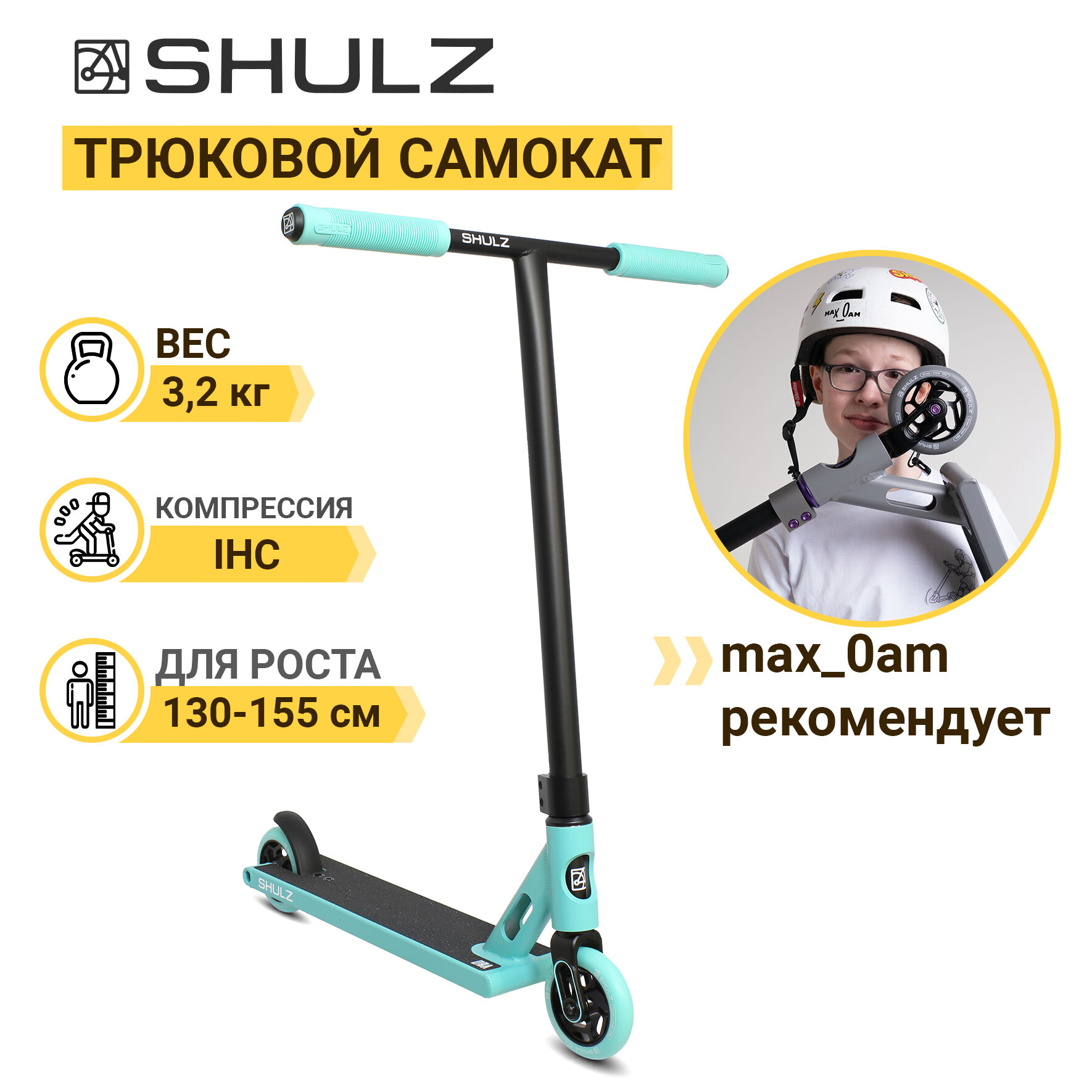 Трюковой самокат SHULZ OWL Мятный, IHC, рост 130-155 см интересное: