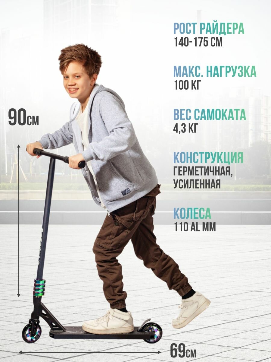 Трюковой самокат STATTUM Sheriff Neo, двухколесный, до 100 кг, до 170 см, от 5+, для подростков