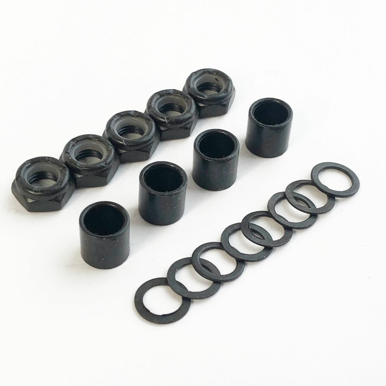 Купить Втулки 4шт, Шайбы 8шт, Гайки на ось 4шт. + 1 в подарок - для скейтборда, лонгборда, круизера, пенни борда, самоката, цвет черный
