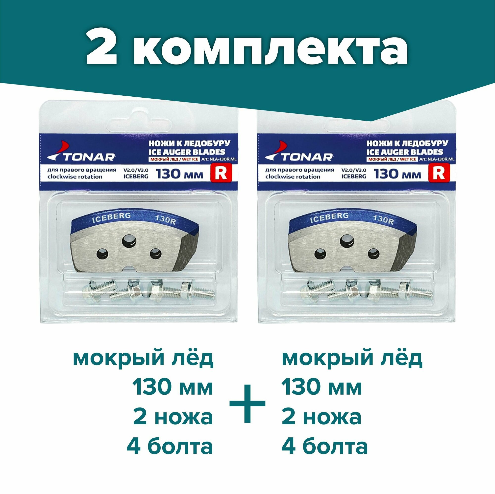 Ножи для ледобура тонар ICEBERG-130R для V2.0/V3.0 мокрый лед правое вращение (NLA-130R.ML)