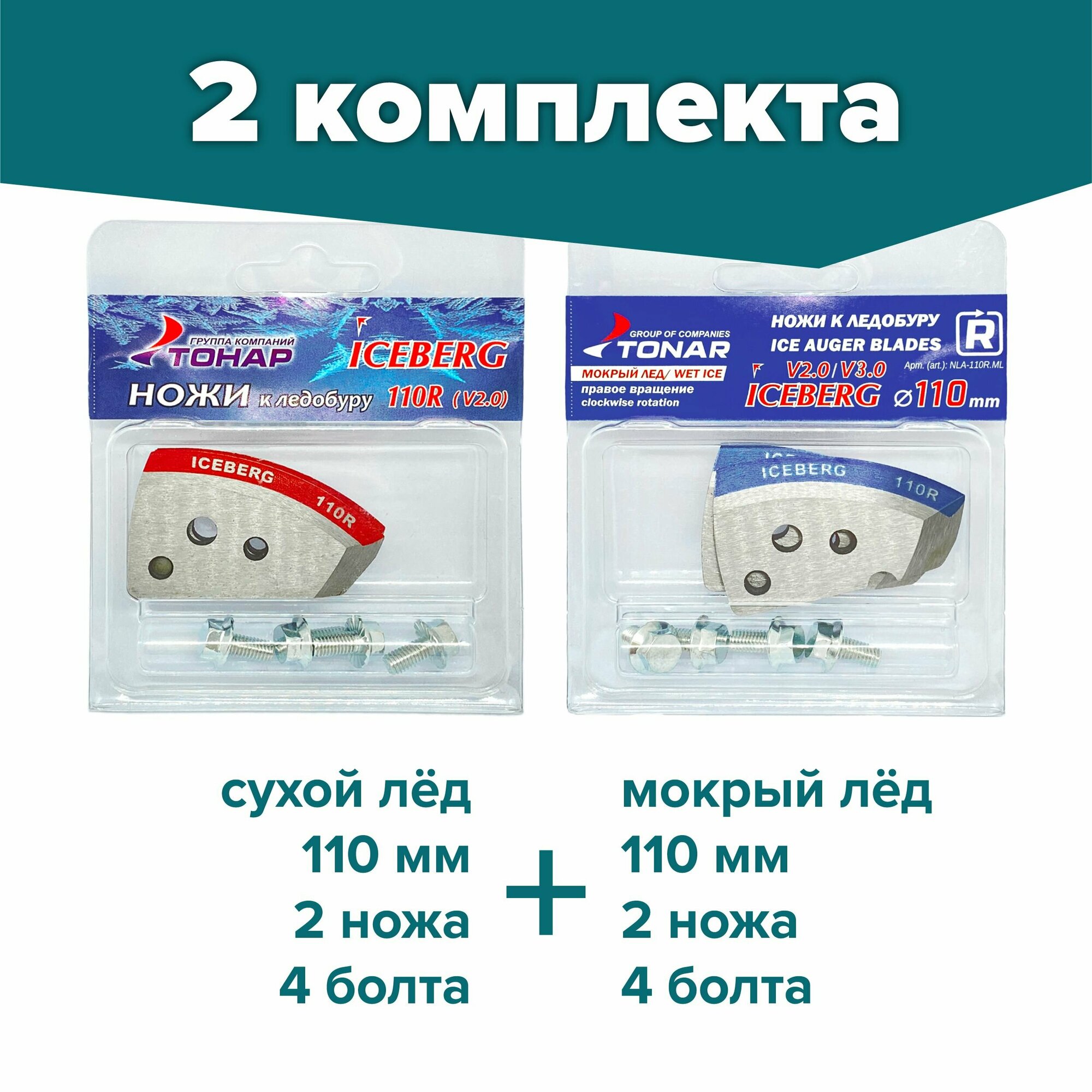 Ножи для шнека и ледобура ICEBERG-110(R) V2.0/V3.0 Тонар, мокрый лед / 2 комплекта, правое вращение
