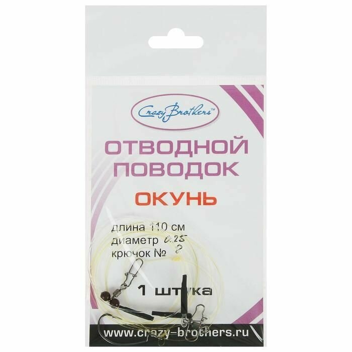 Поводок Crazy Brothers "Окунь", офсетный крючок №8, незацепляющийся, 2 шт интересное:
