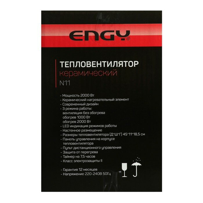 Тепловентилятор Engy N11, керамический, настенный, 2000 Вт, 2 режима, белый Engy 7505100 .