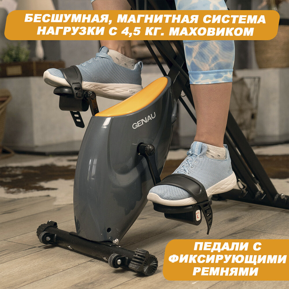 Домашний велотренажер Genau XT350 с эспандерами для рук, серый интересное: