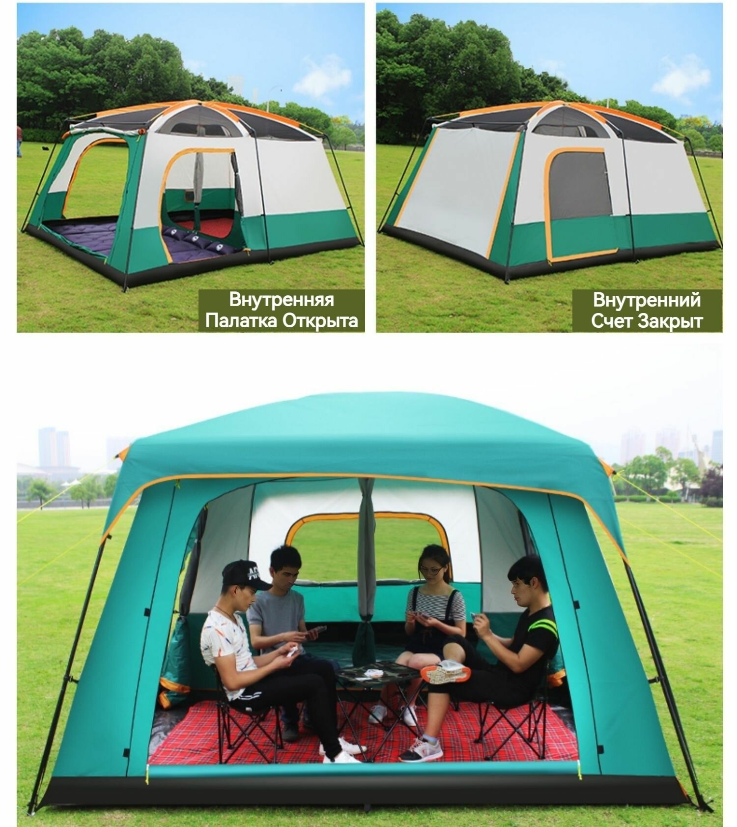 Палатка 8-12 Местная С Тамбуром И Навесом 430*305*210cm, ShopGo С Москитной Сеткой,Для Кемпинга, Туризма И Рыбалки , Для Кемпинга, Туризма И Рыбалки