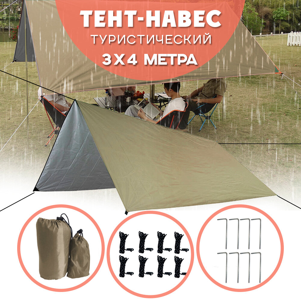 Тент туристический, садовый, походный, укрывной 3 х 4 м, цвет - хаки интересное: