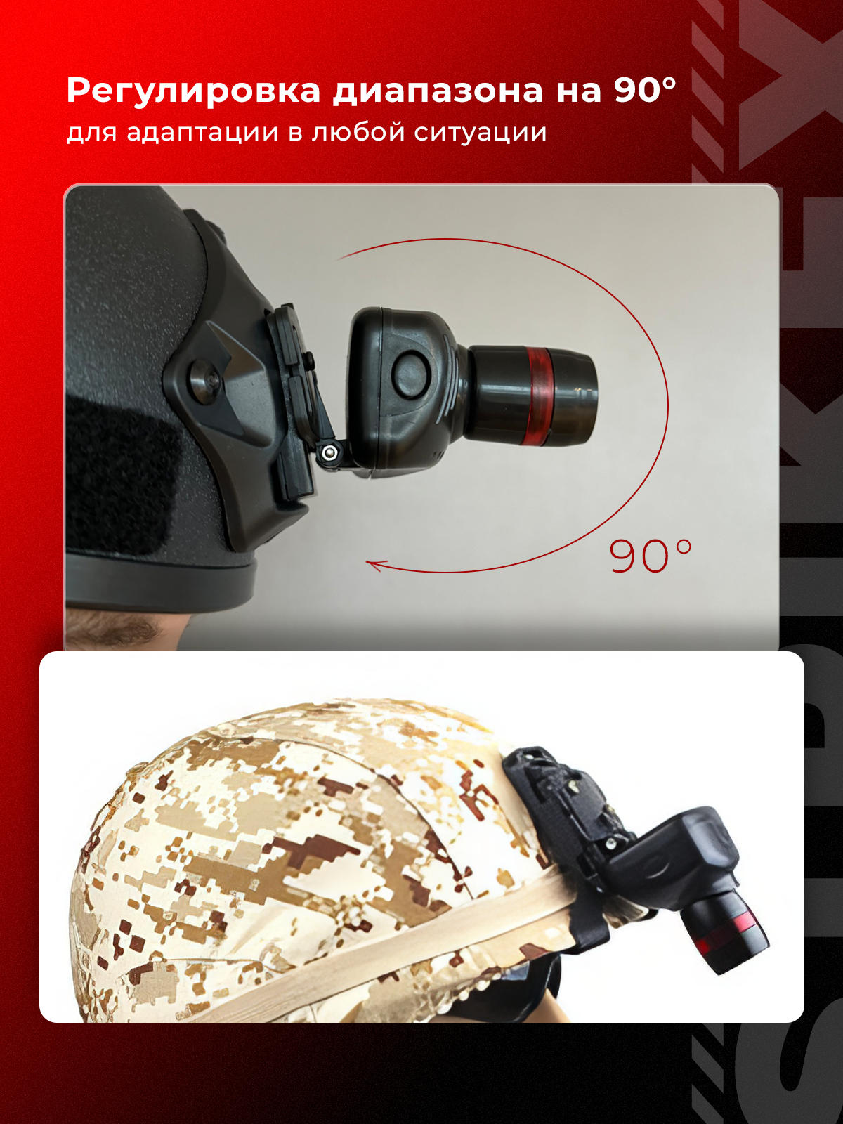 Купить Нашлемный фонарь, тактический, влагозащищенный, светодиоды, дальность освещения 300 метров