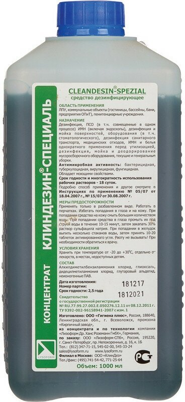 Ниже Вы можете прочитать отзывы на Дезинфицирующее средство Клиндезин-Специаль 1,0 л (концентрат), ознакомится с подробными характеристиками, посмотреть интересные обзоры и фотографии на Дезинфицирующее средство Клиндезин-Специаль 1,0 л (концентрат).