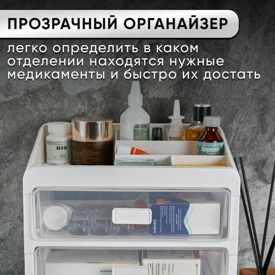 Органайзер для лекарств Oqqi, аптечка домашняя большая, контейнер пластик, белый, 19.8х27.5х29.5 см интересное: