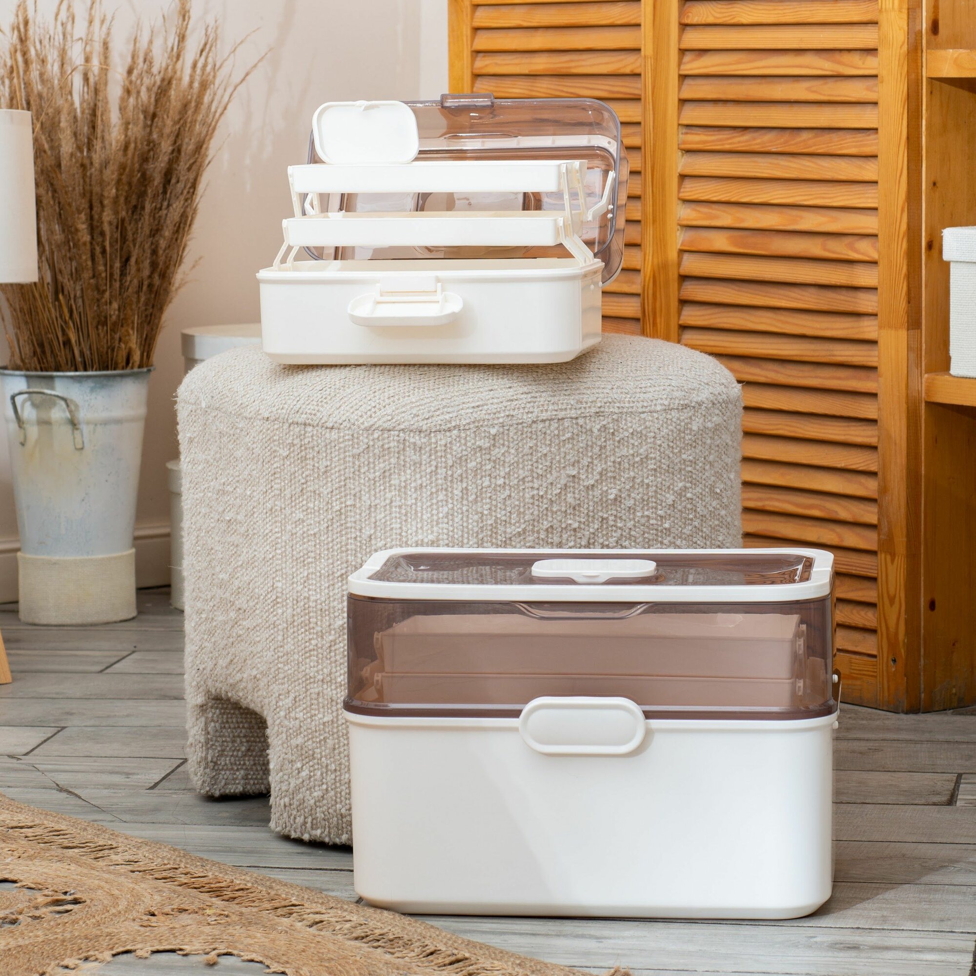 Органайзер для лекарств Oqqi, аптечка домашняя большая, контейнер пластик, белый, 19.8х27.5х29.5 см