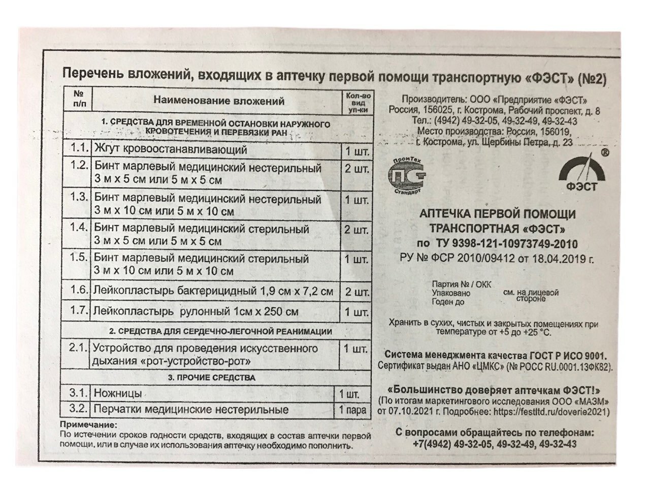 Аптечка первой помощи транспортная "фэст", перечень 2 7782190 .