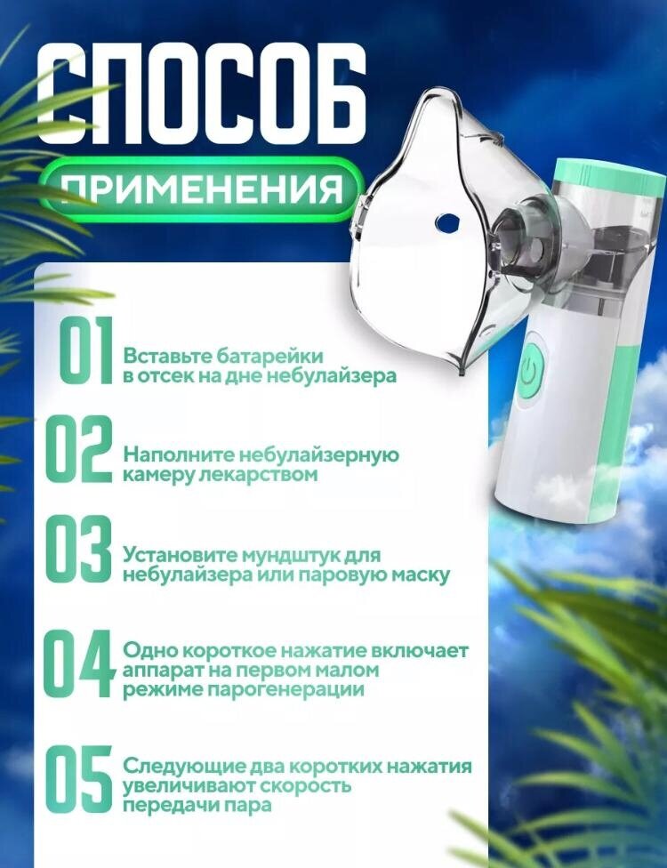 Небулайзер-ингалятор ультразвуковой, электронный с насадками для детей и взрослых , белый зеленый интересное: