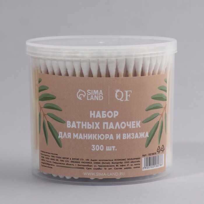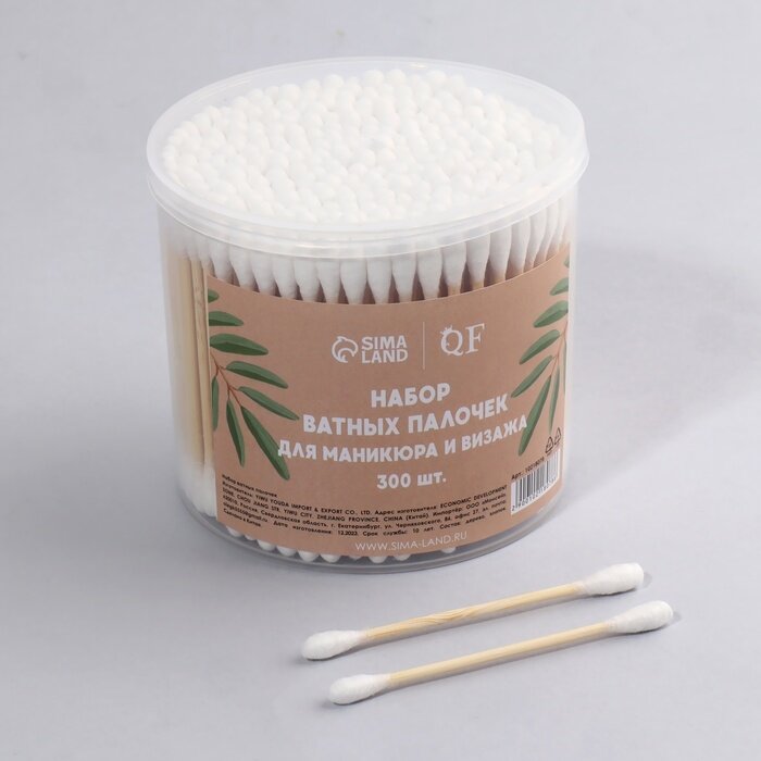 Купить QF Ватные палочки на деревянной основе, биоразлагаемые, 7 см, 300 шт, в пластиковом органайзере