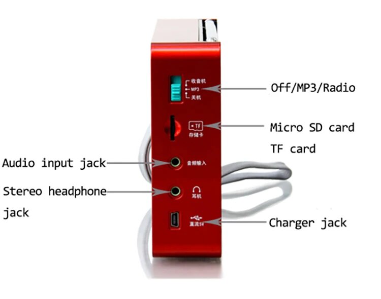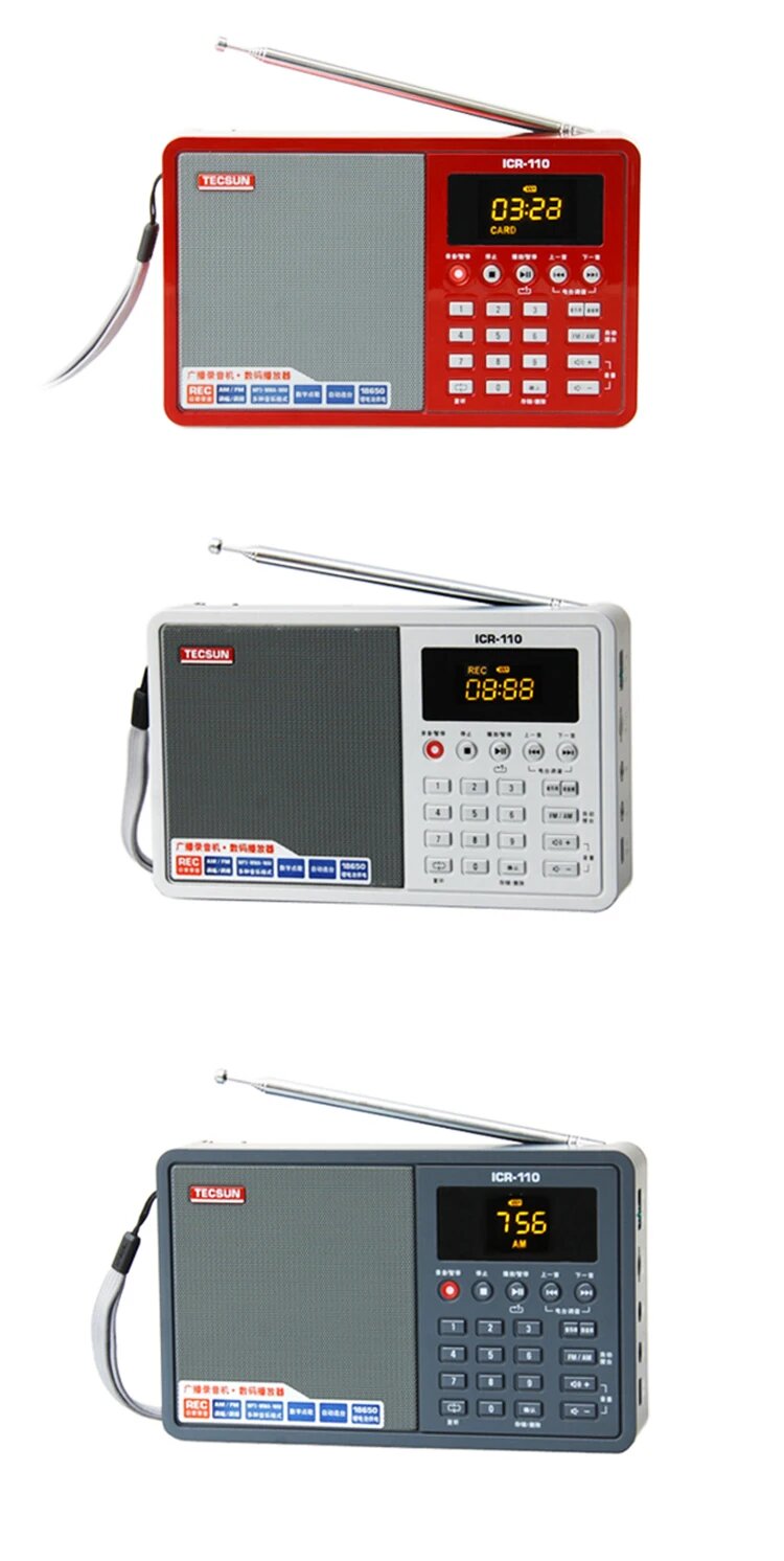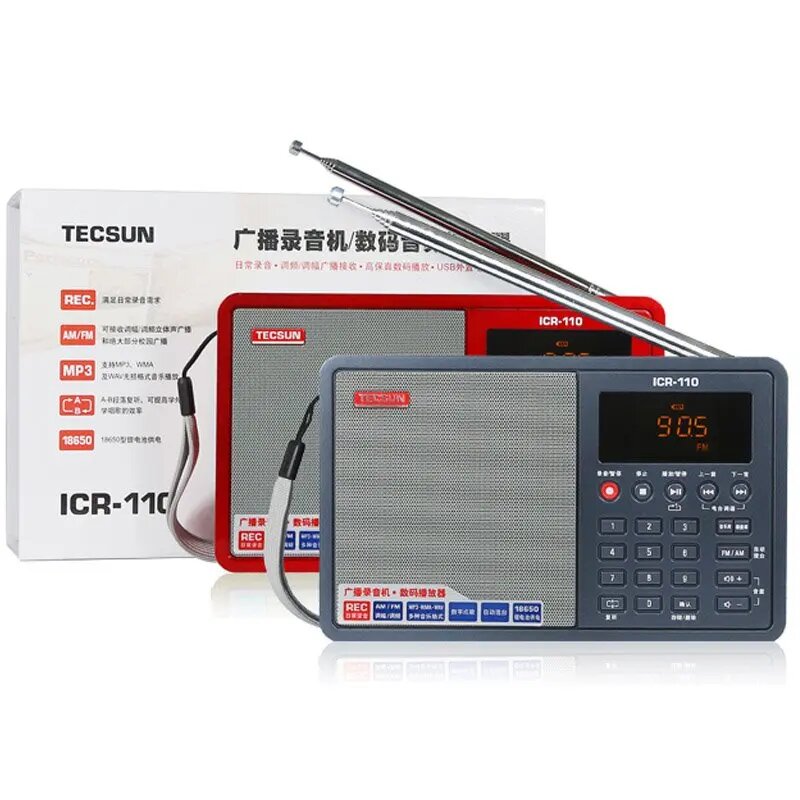 Tecsun ICR-110 Портативное радио, Красный