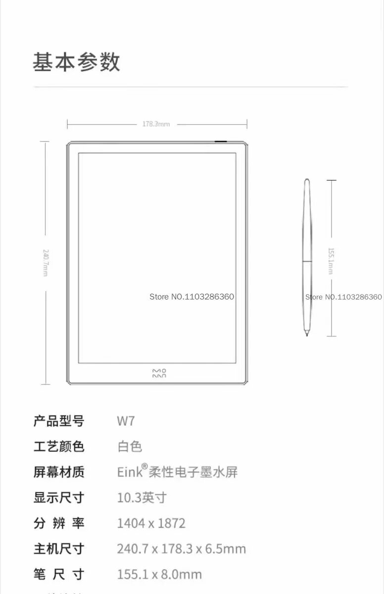 Электронная книга Moaan W7, 10,3 дюйма, E-ink 8,1 ppi, Белый, E-book Reader + Случае Наборы