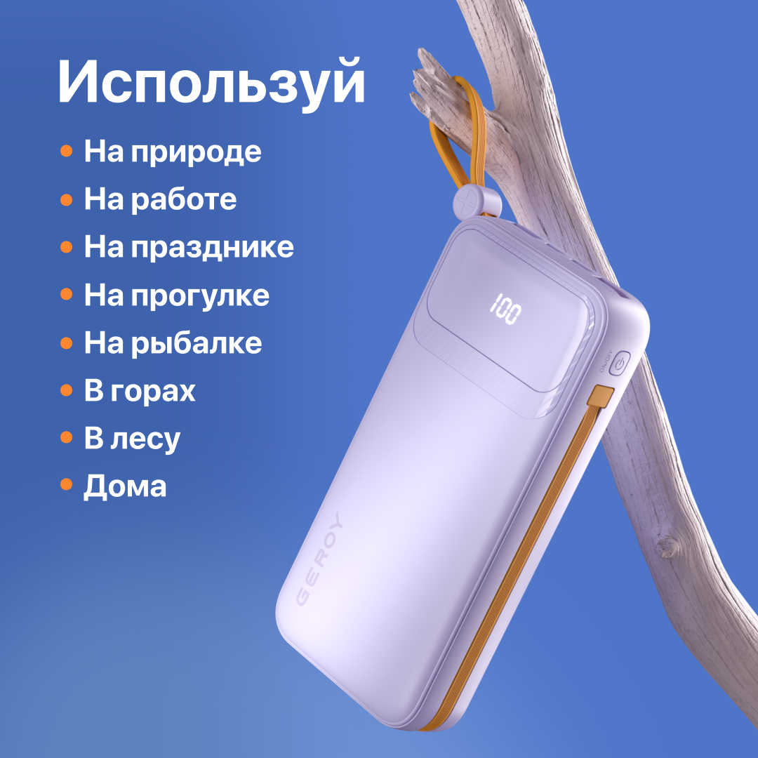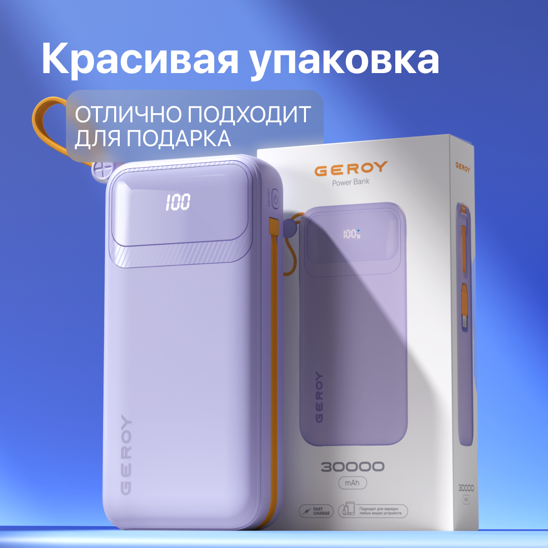 Внешний аккумулятор Power Bank на 30000 mAh, повербанк GEROY, фиолетовый интересное: