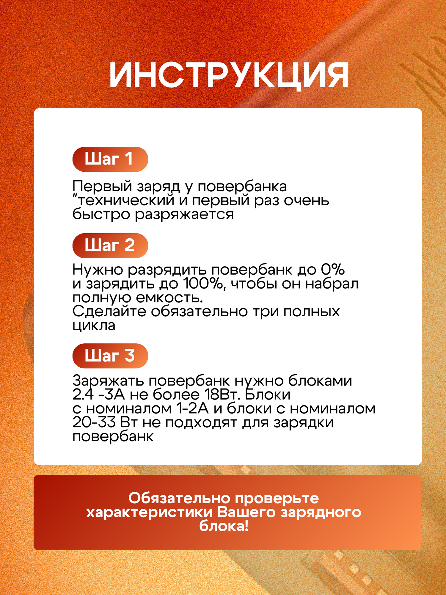 | Комплектация | 1. Внешний аккумулятор 2. Кабель для зарядки 3. Инструкция |