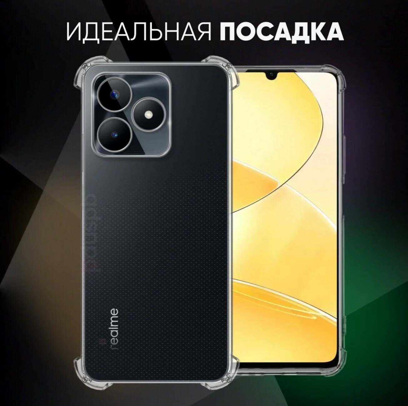 Купить Комплект 2 в 1: Чехол + стекло для Realme C51 противоударный силиконовый прозрачный клип-кейс с защитой камеры и углов на Реалми Ц51