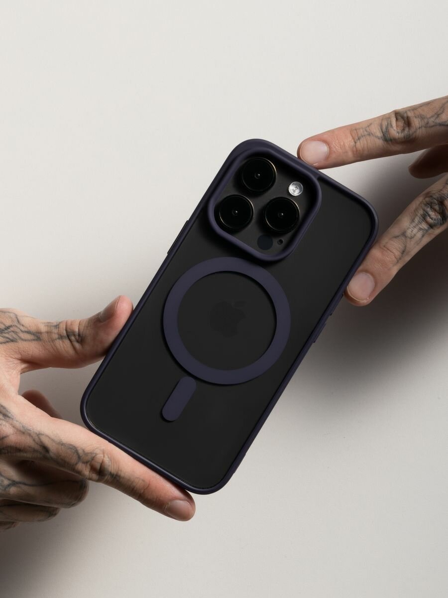 Купить Чехол О'кейси "MagSafe", для Apple iPhone 14 Pro Max, прозрачный, магнитное крепление, фиолетовый