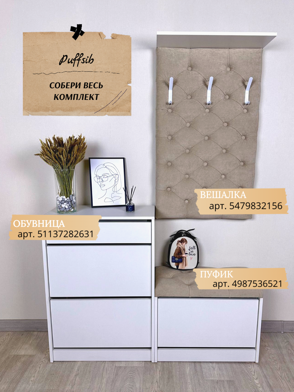 СохранитьПуфик в прихожую закрытый с обувницей Puffsib А-4, белый/бежевый интересное: