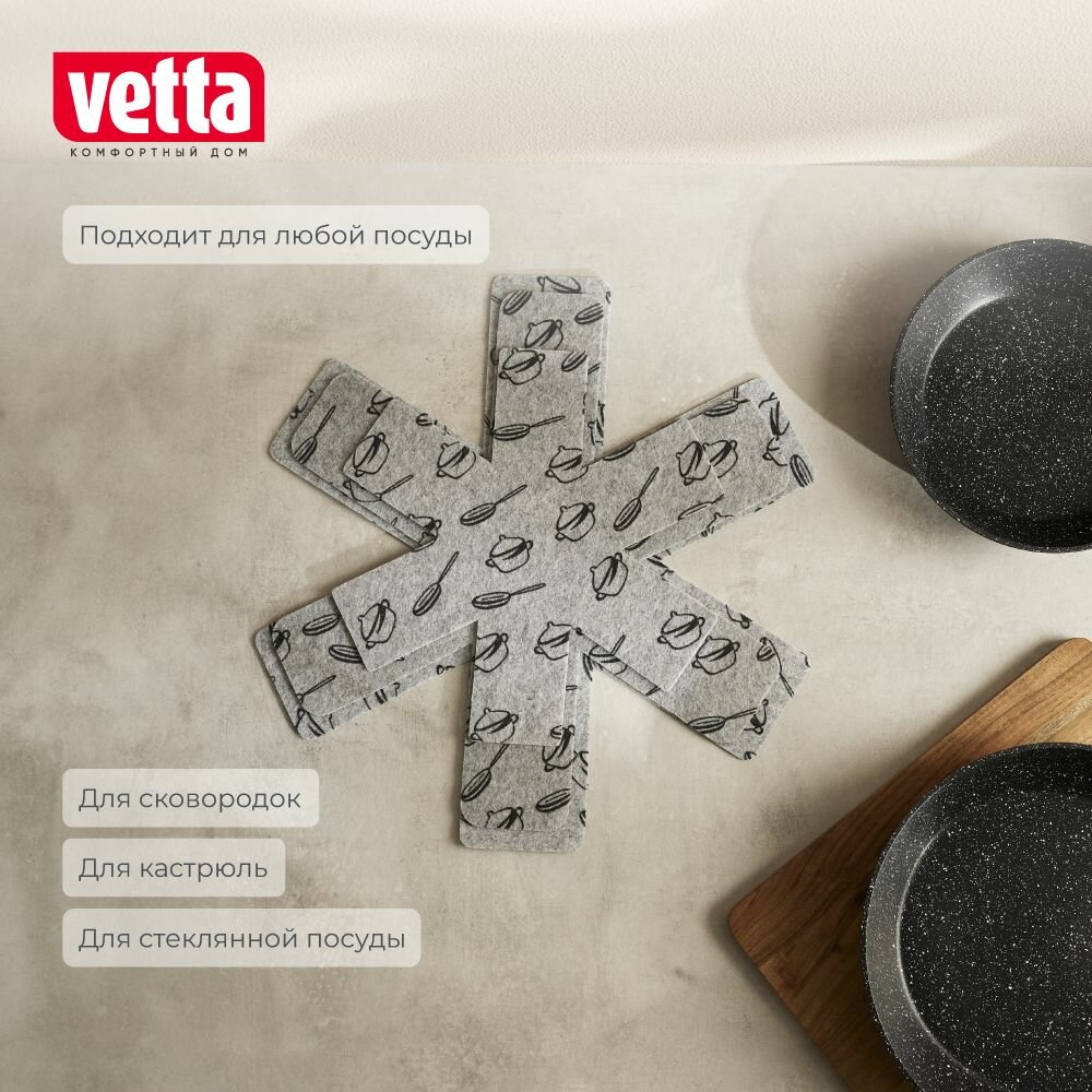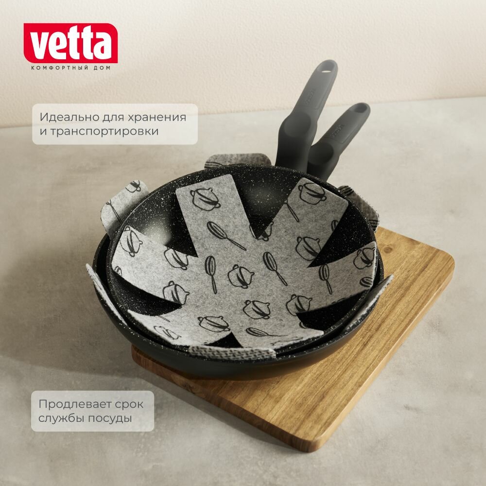 Набор разделителей для сковородок и посуды VETTA, 3шт, 26см/35см/38см, фетр, 220г/м. кв. интересное: