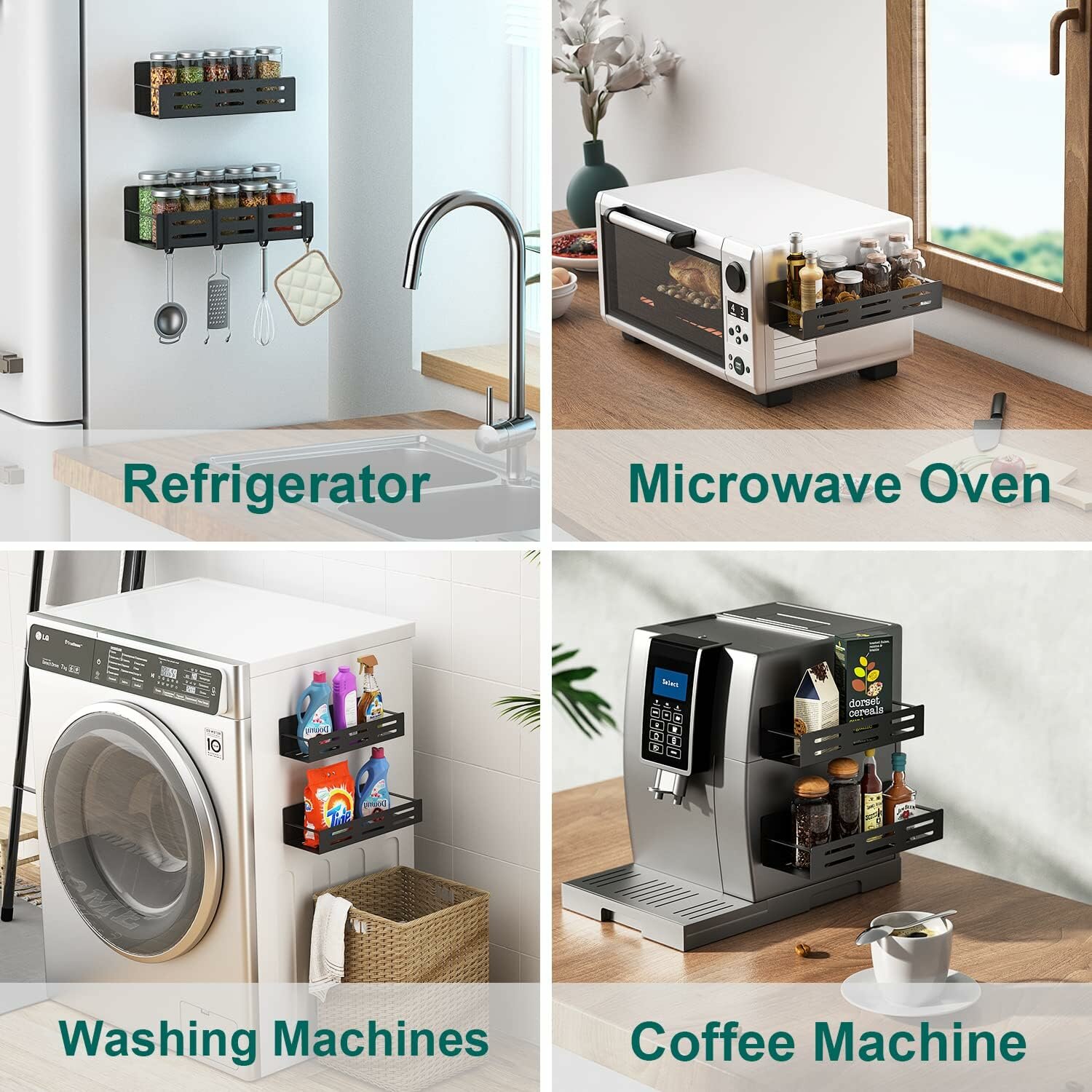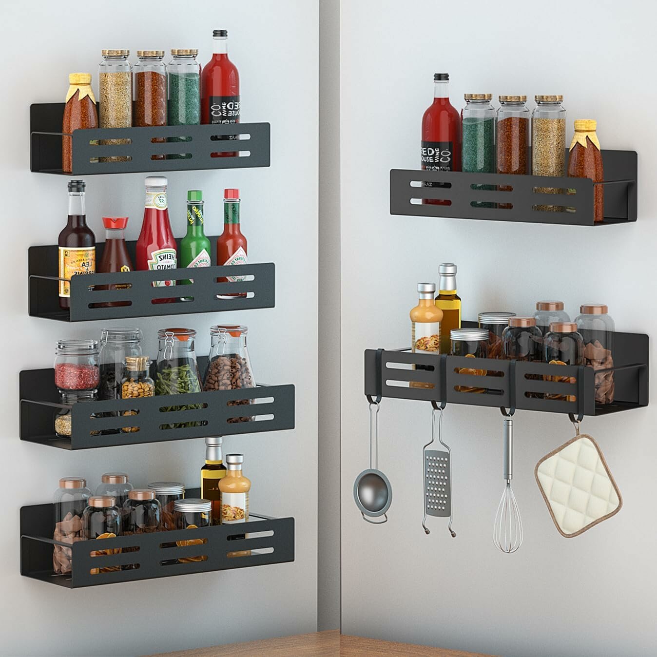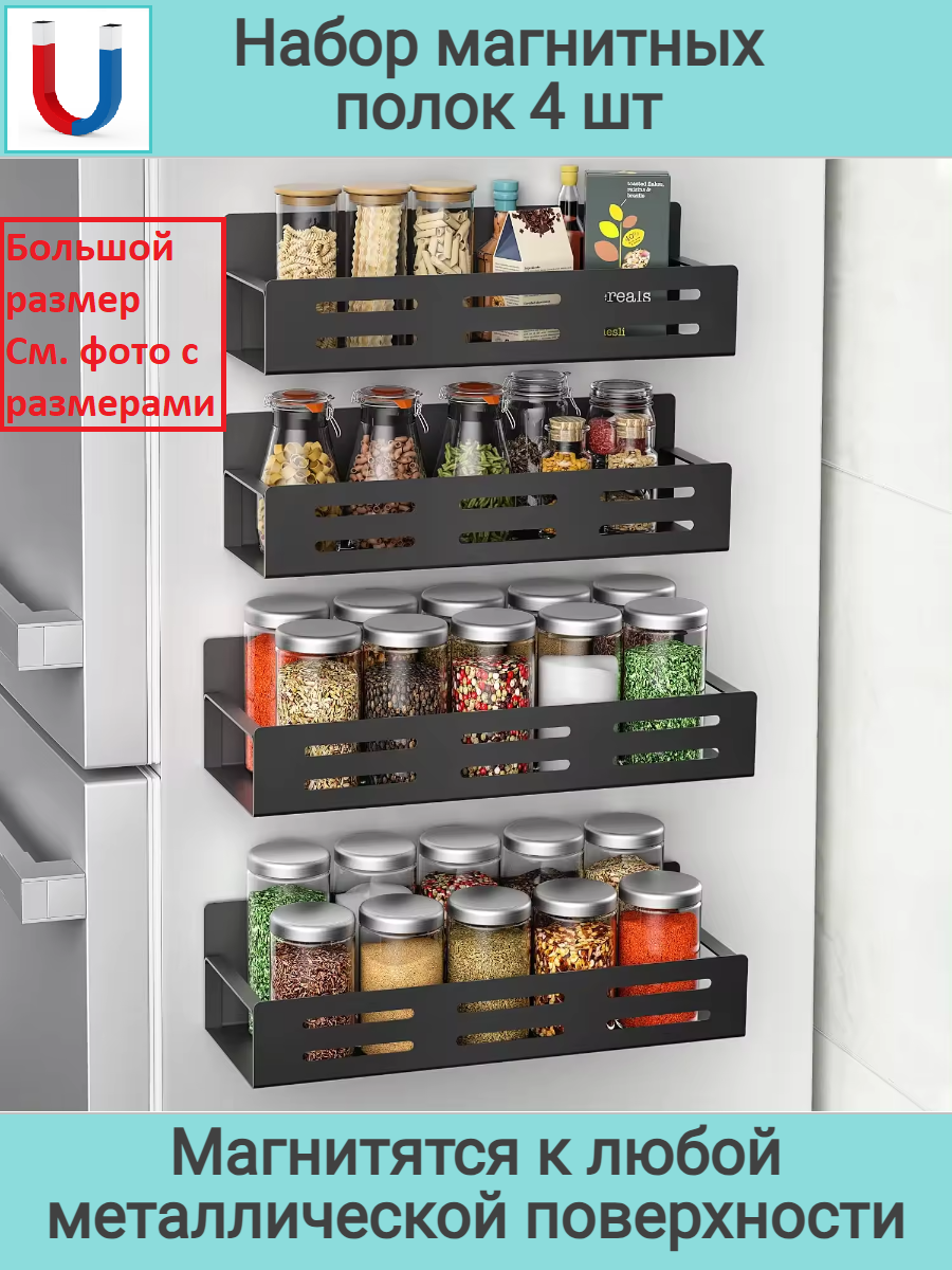 Магнитная полка на холодильник черная / Набор 4 шт. полки на магнитах
