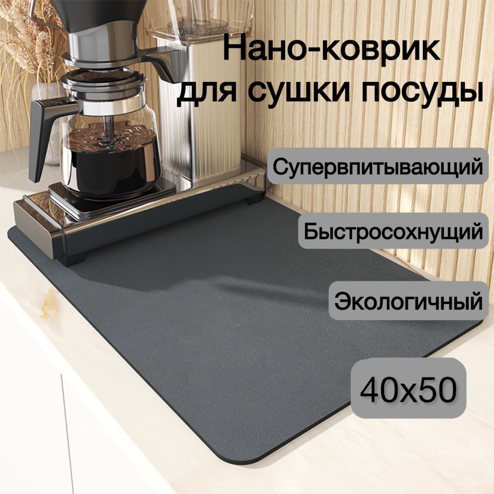Нано коврик для сушки посуды. Сушилка для посуды 40*50. Экологичный, антибактериальный. Практичный. Впитывающий коврик для сушки посуды. интересное: