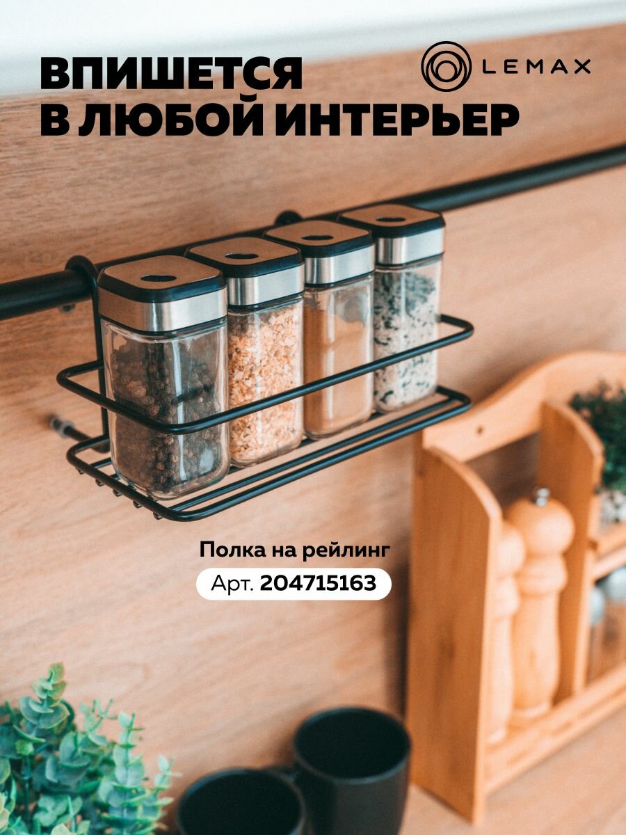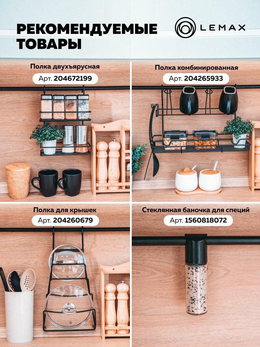 Комплект рейлинга Модерн Lemax черный / Труба d16 с держателями и крепежом 600 мм / Для хранения посуды и полотенец на кухне интересное: