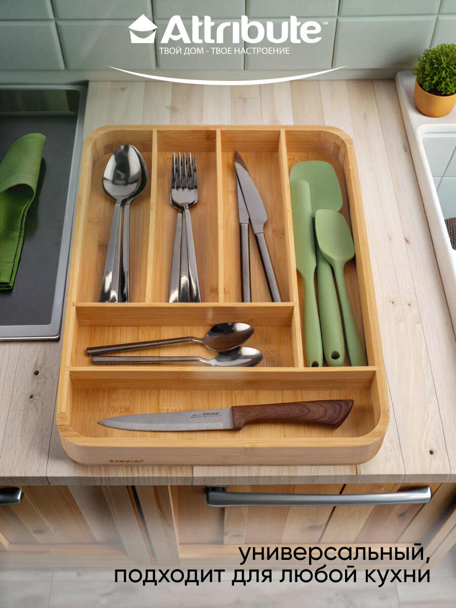 Лоток для столовых приборов раздвижной "BAMBOO TOUCH" ATTRIBUTE GADGET, 23.5-35.5х35х4.5см