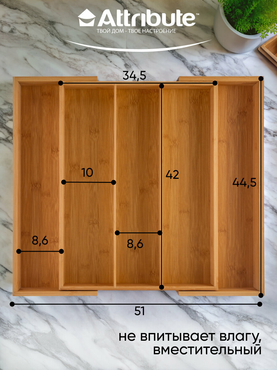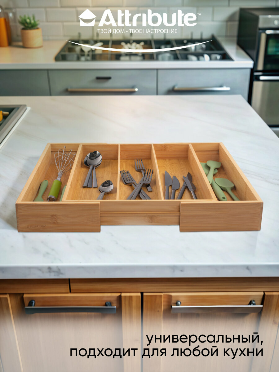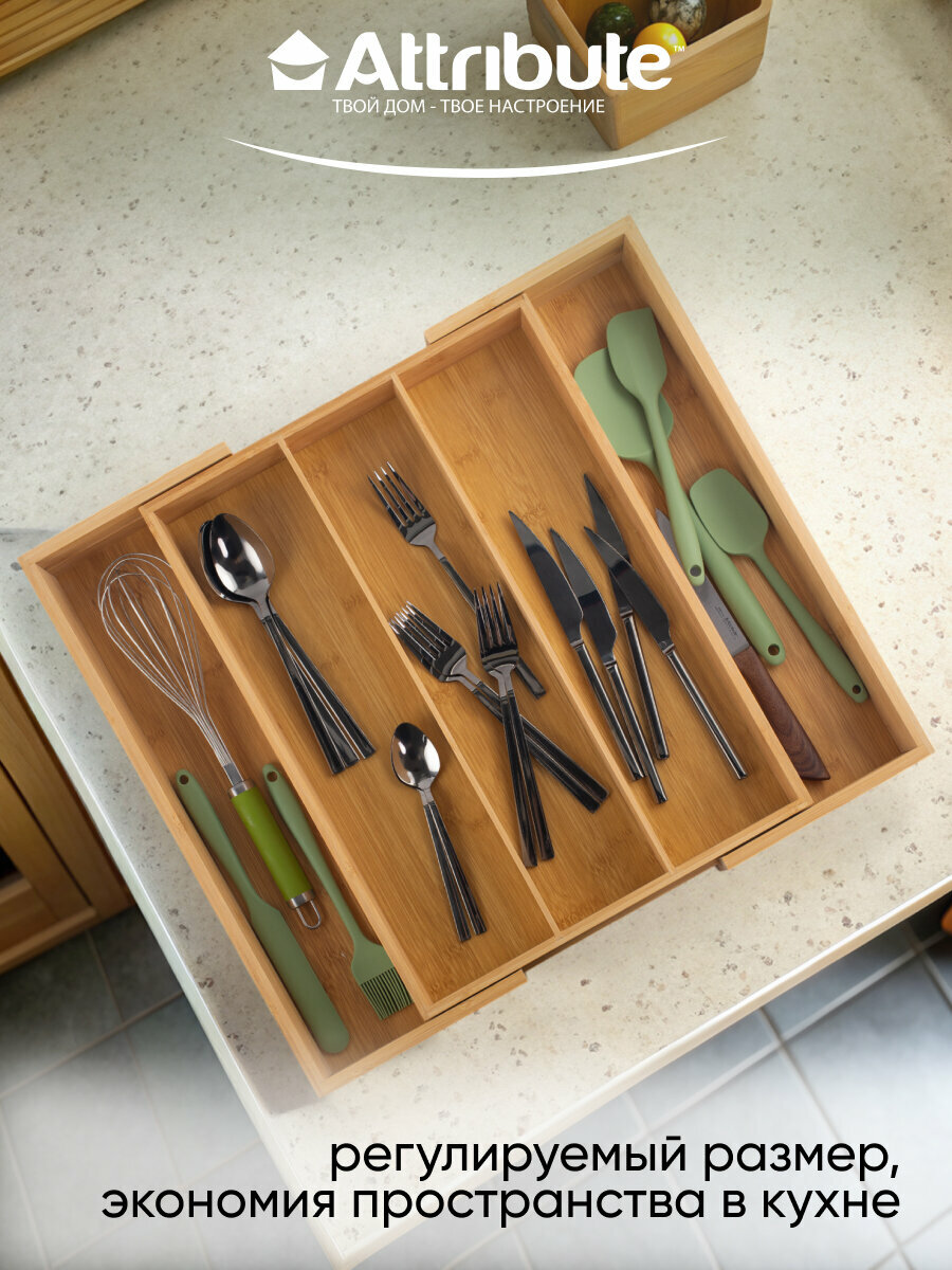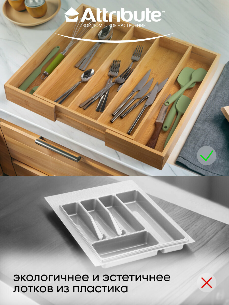 Лоток для столовых приборов ATTRIBUTE GADGET BAMBOO TOUCH раздвижной 34.5-51х44.5х6.5см интересное: