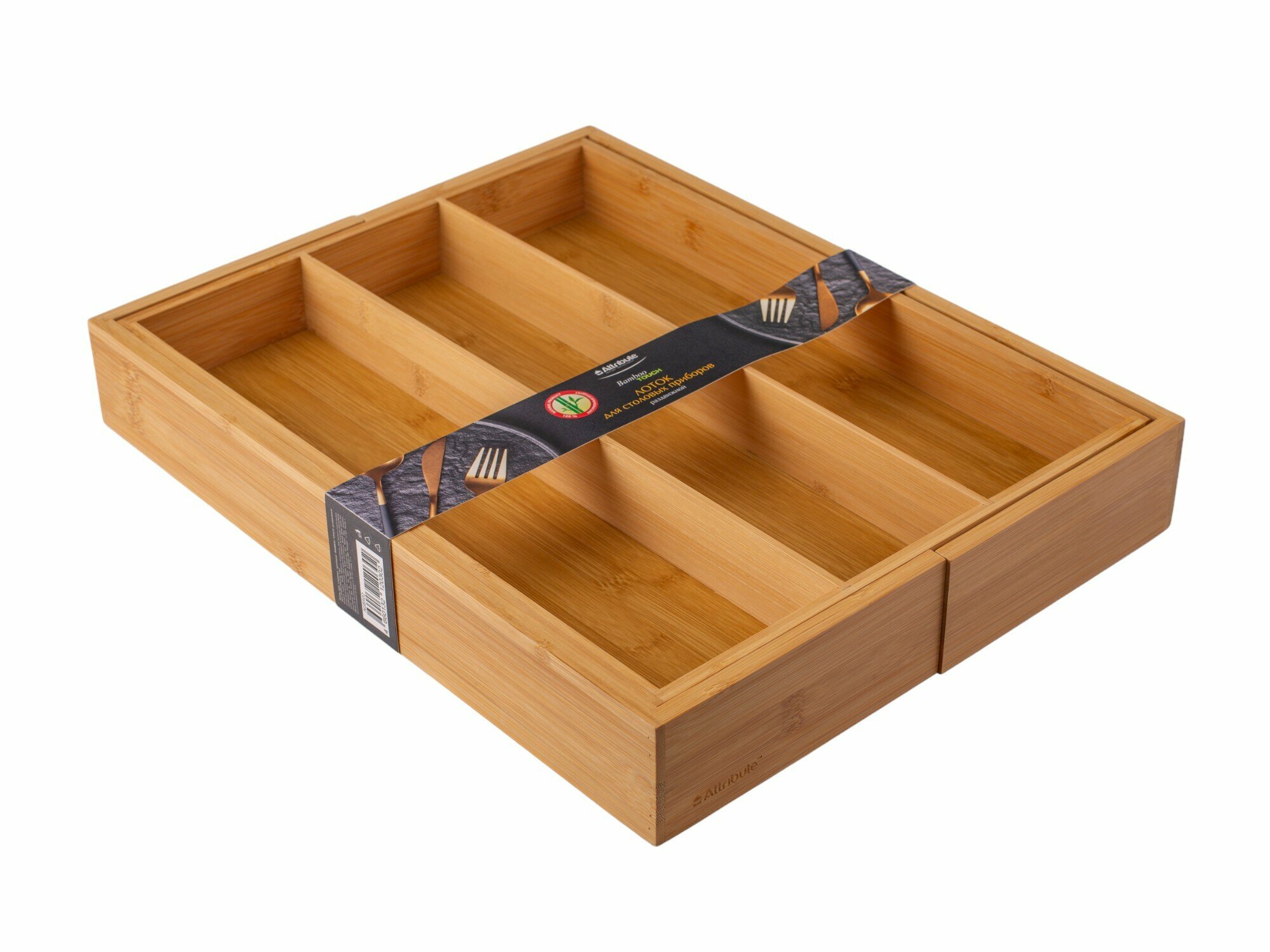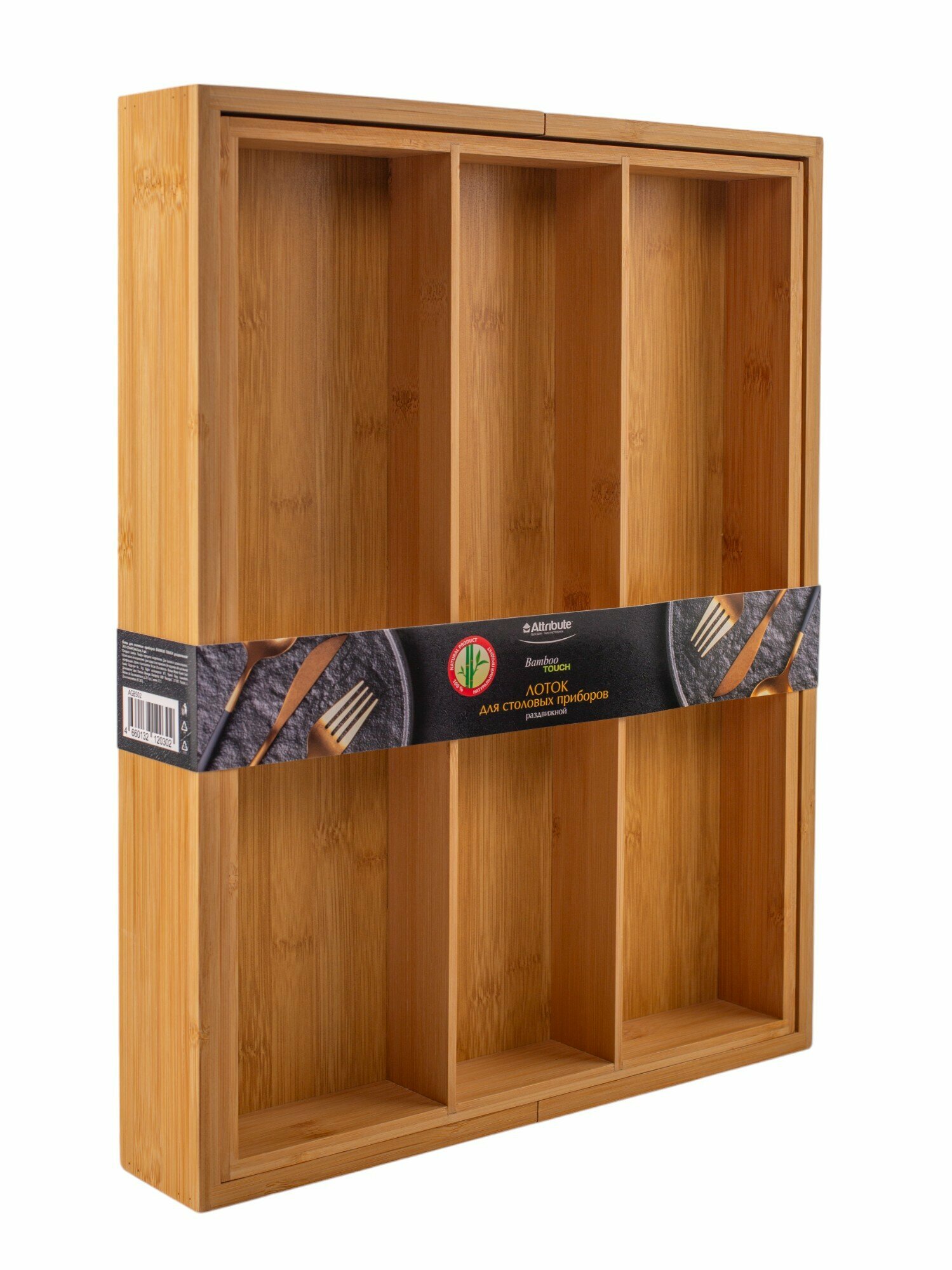 Лоток для столовых приборов раздвижной "BAMBOO TOUCH" ATTRIBUTE GADGET, 23.5-35.5х35х4.5см