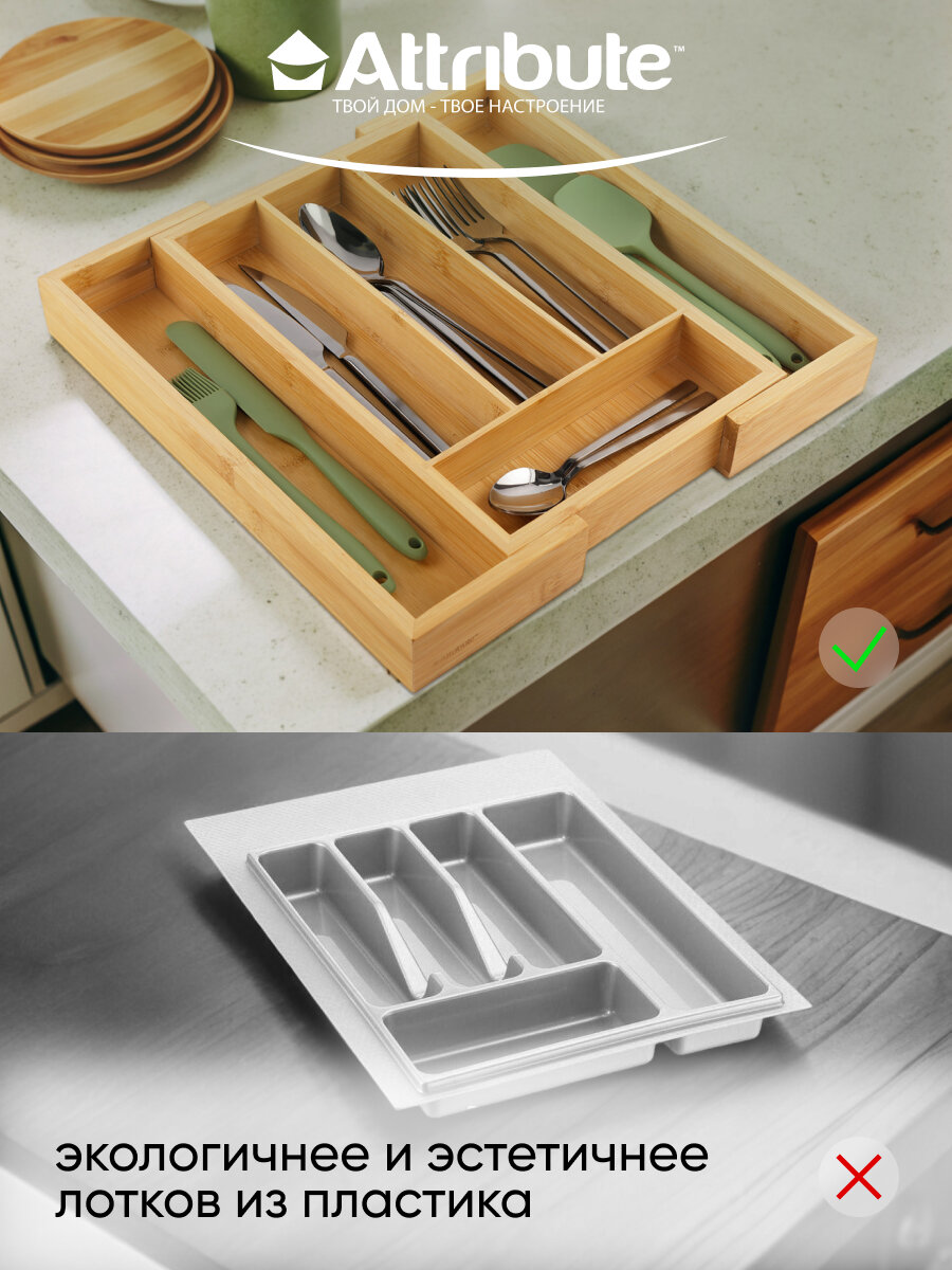 Лоток для столовых приборов раздвижной "BAMBOO TOUCH" ATTRIBUTE GADGET, 23.5-35.5х35х4.5см интересное: