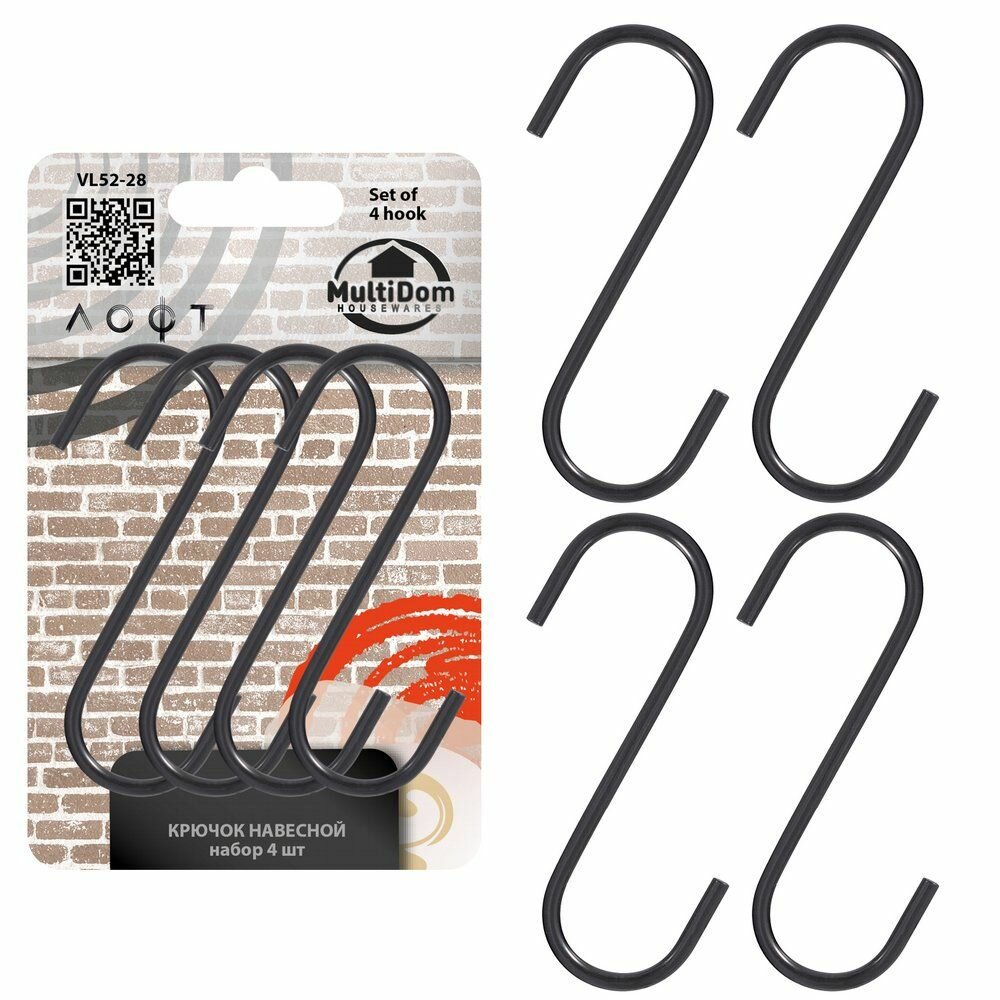 Крючок навесной Мультидом "Лофт", сталь с эмалевым покрытием 4 шт, 8,5х5,5 см (VL52-28) интересное: