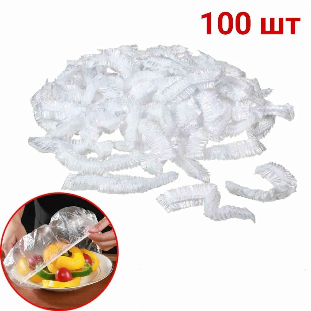 Крышка-пакеты прозрачные пищевые фасовочные для хранения и упаковки продуктов на резинке чехлы шапочки для посуды и еды 100шт