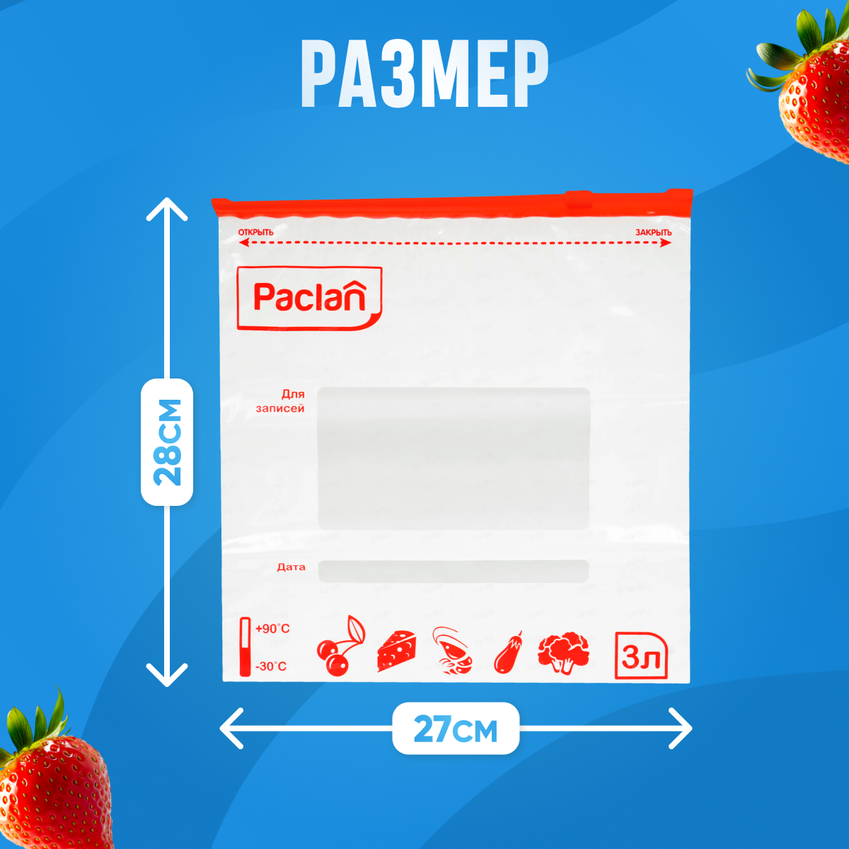 Зип пакеты Paclan для хранения и замораживания продуктов с замком застежкой 1 л 15 шт. 3 упаковки