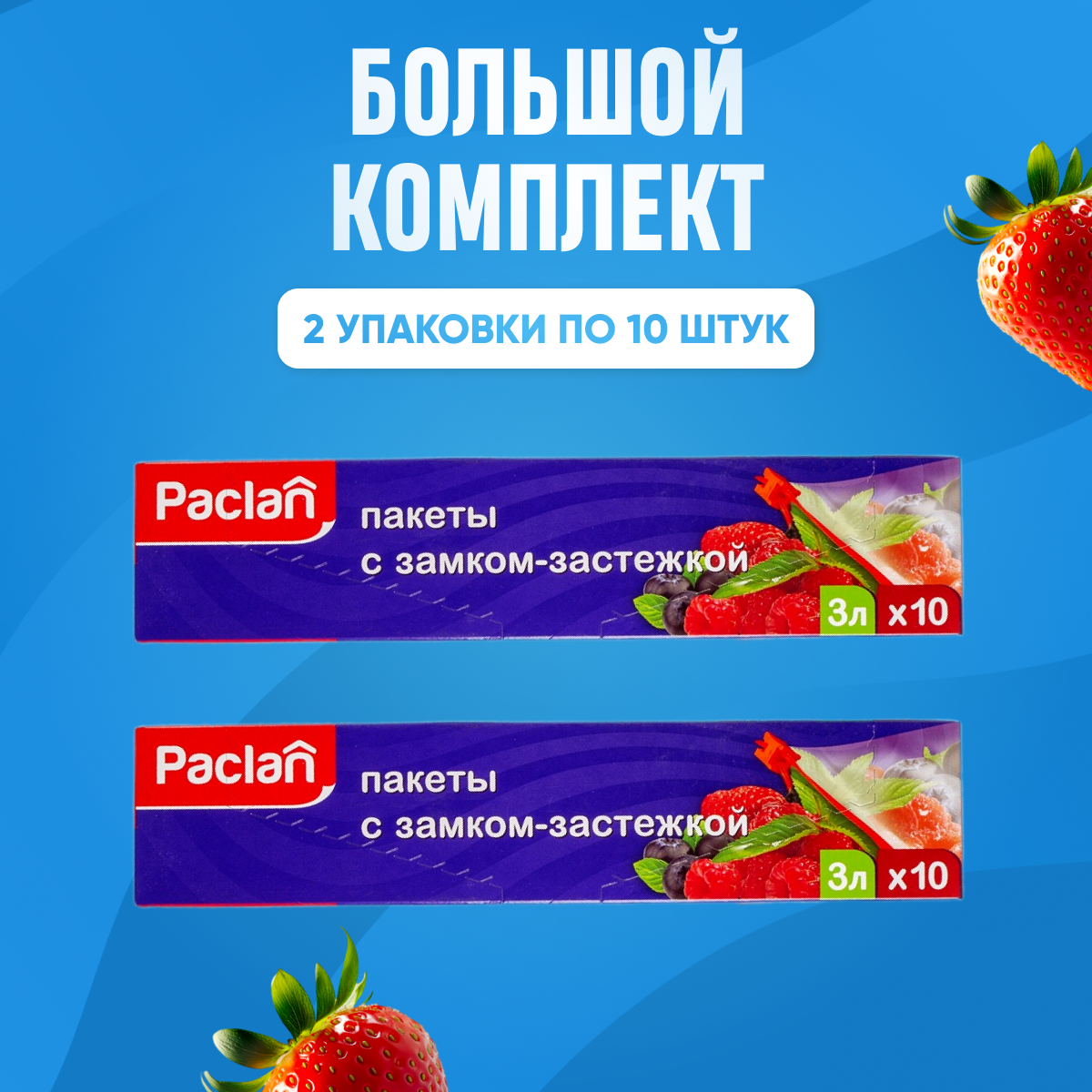 Комплект Paclan Пакеты с замком-застежкой 27 х 28 см. 3 л. 10 шт/упак. х 2 упак.