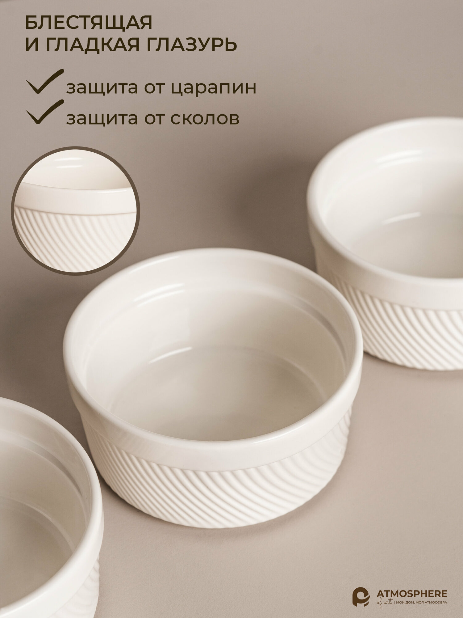 Набор кокотниц Atmosphere of Art "Basic" / фарфор/ 6шт/ 150мл/ 9*4.5см