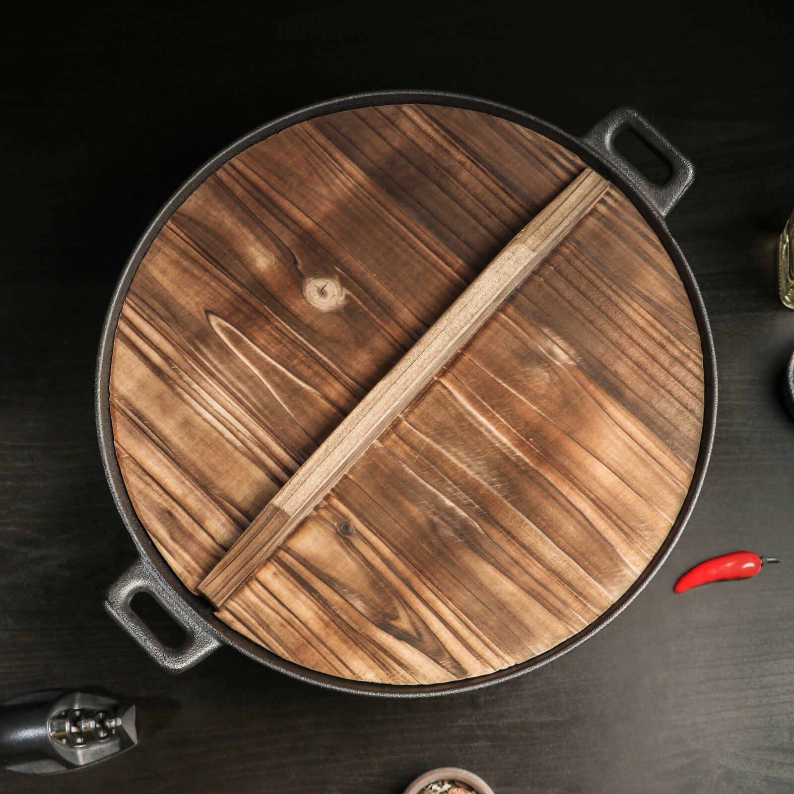 Сковорода-ВОК Magma «Хемминг», 4 л, 37×9,5 см, чугун, с деревянной крышкой, индукция, чёрная интересное: