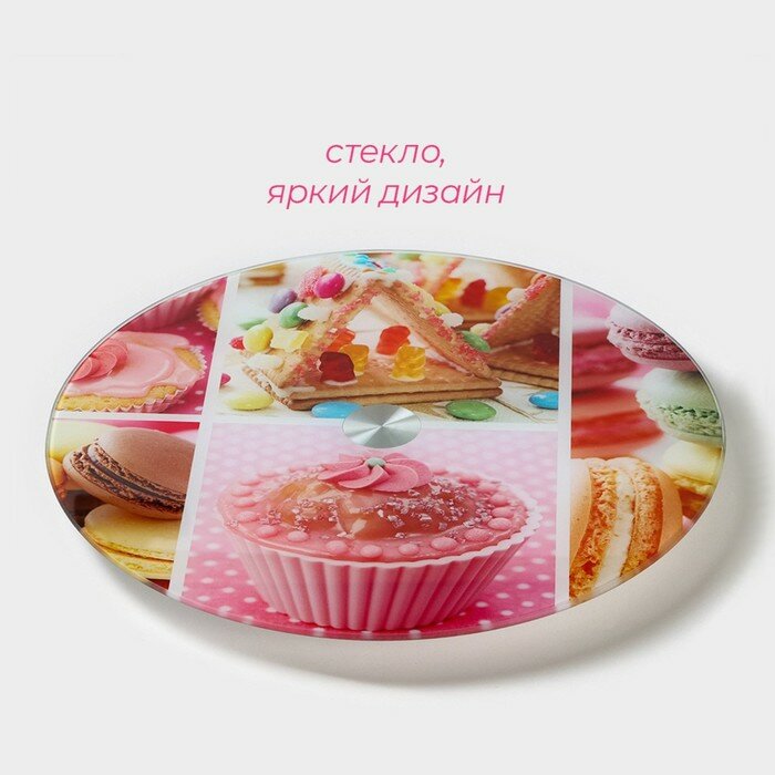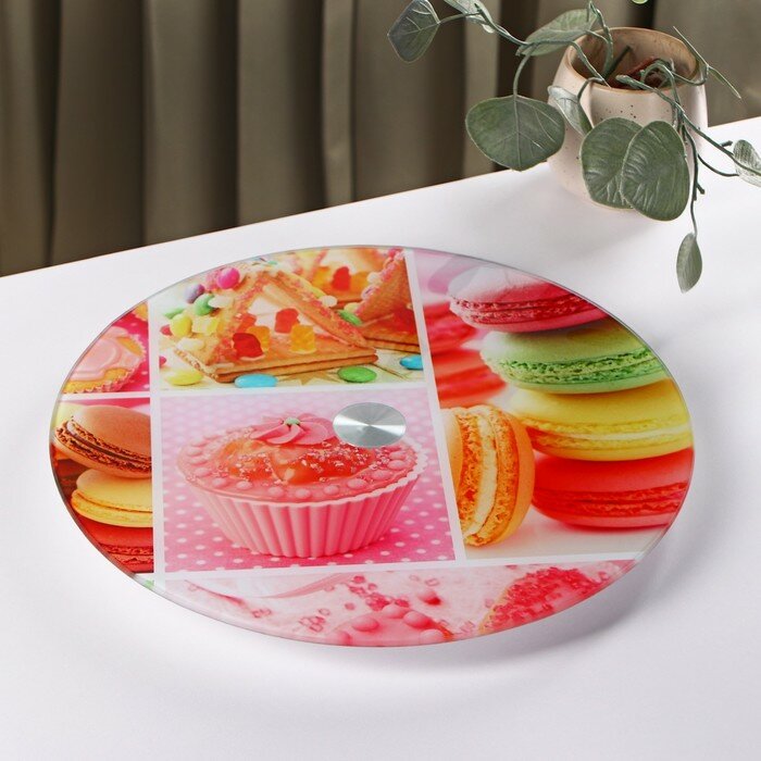 Подставка для торта Доляна «Сладости», d=32 см, вращающаяся, стекло, разноцветная интересное: