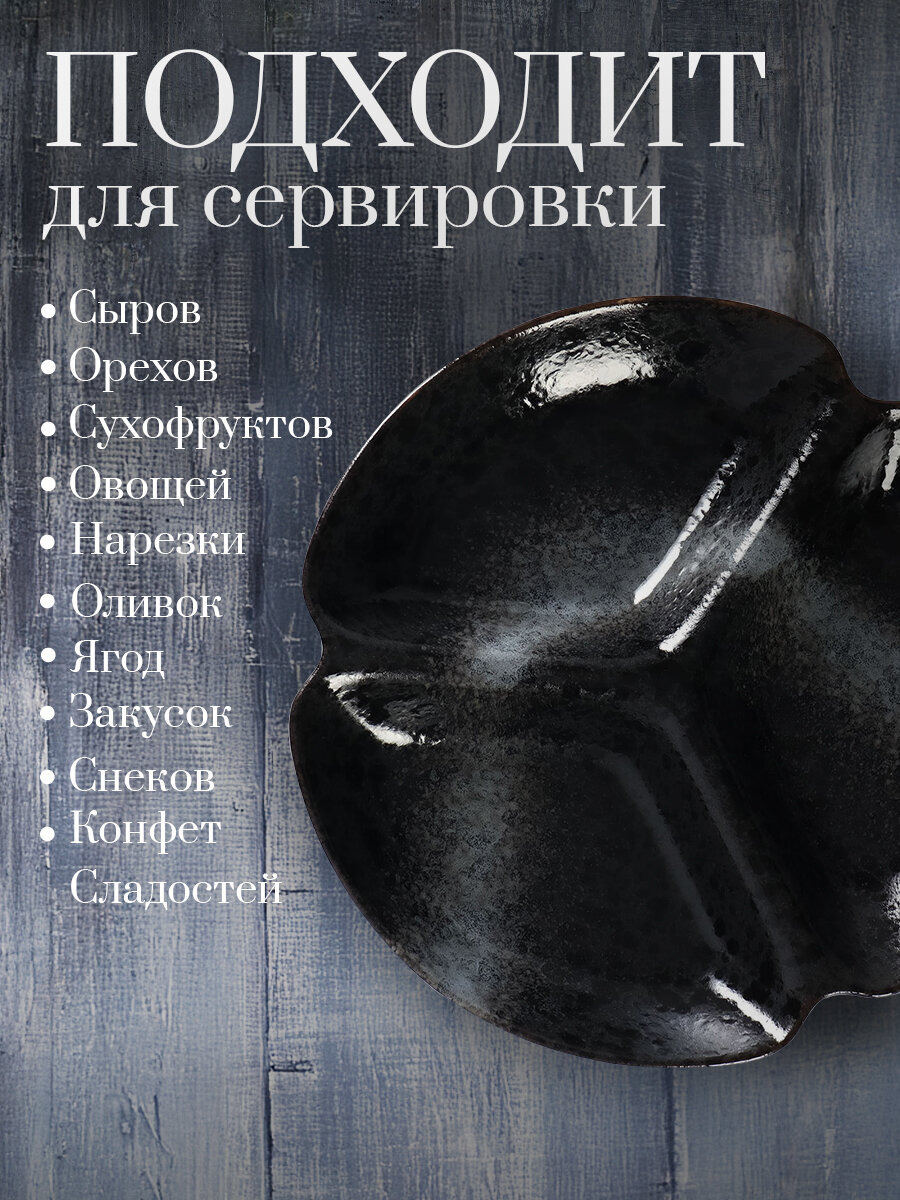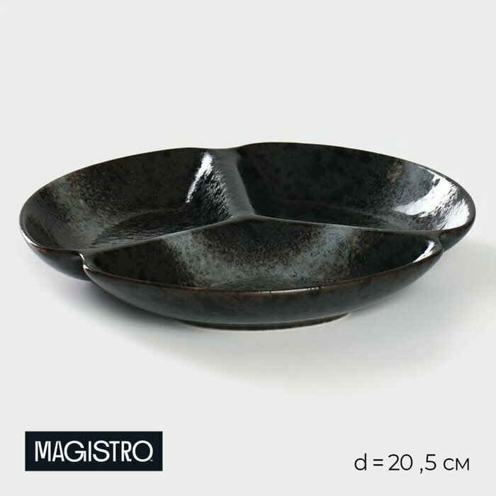 Менажница фарфоровая 3 ячейки Magistro Галактика , 24,5 24,5 13,5 см, цвет чёрный