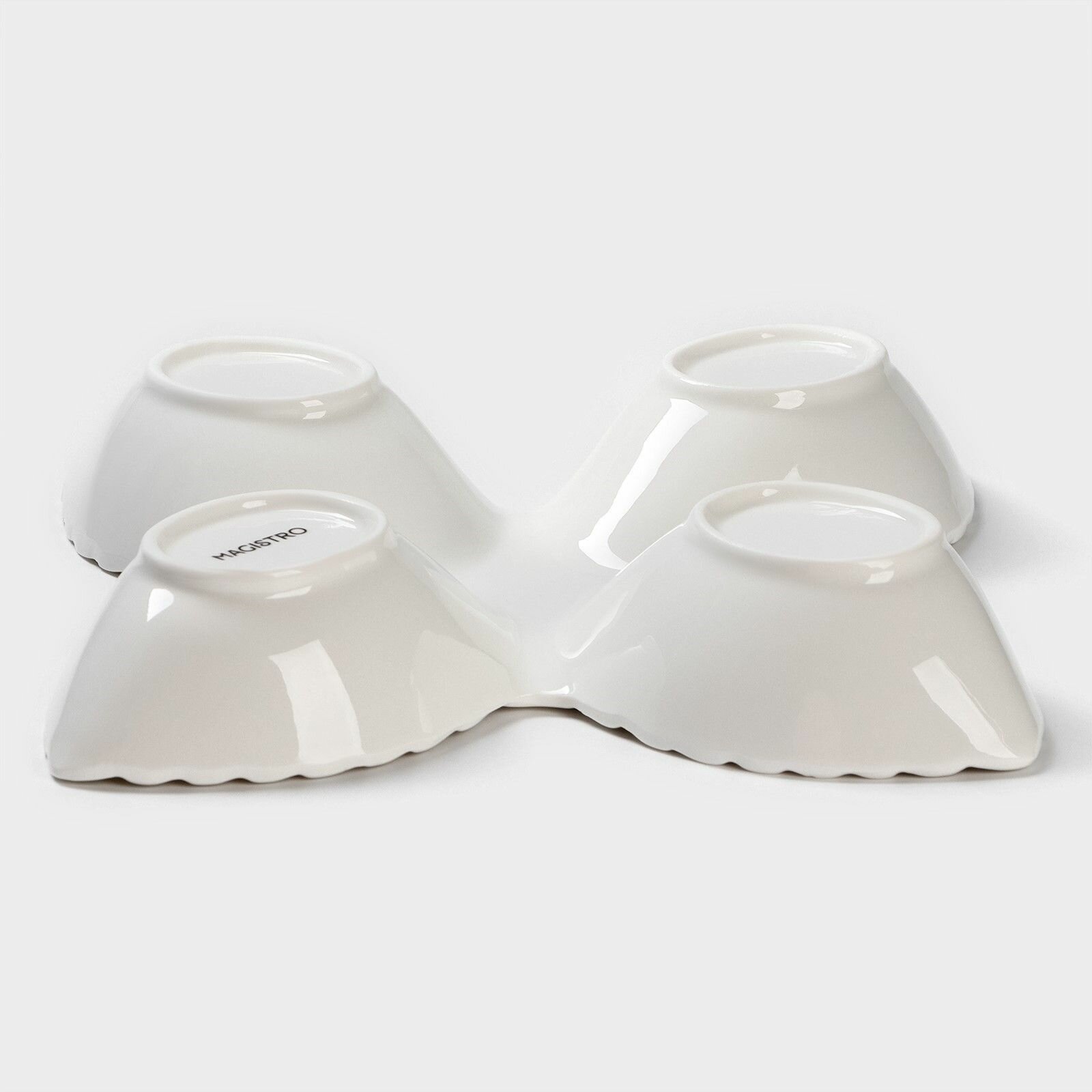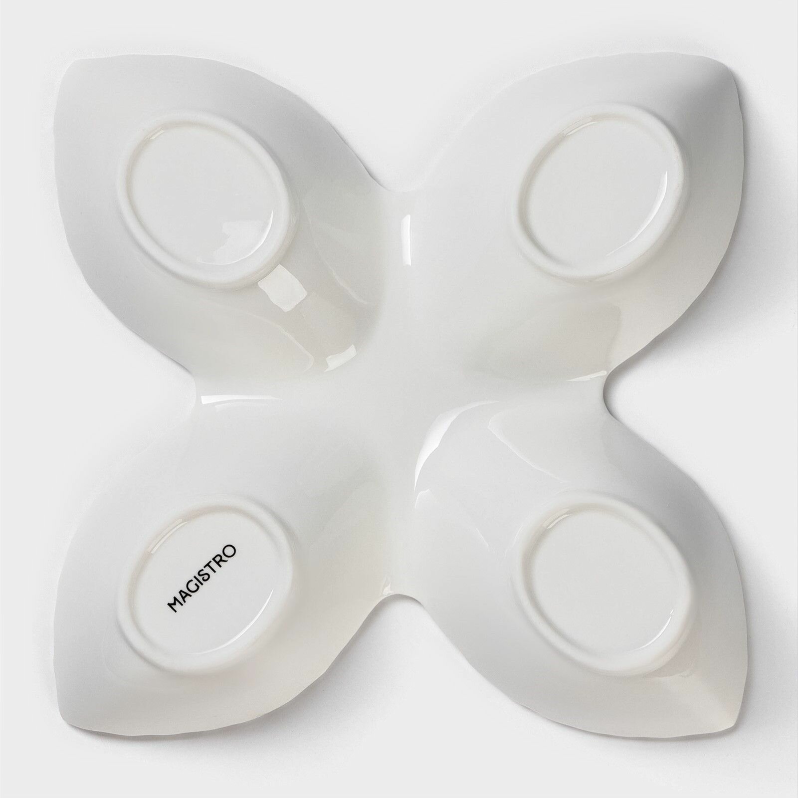 Купить Менажница фарфоровая 4 ячейки Magistro "Листочки", 27х4 см, цвет белый