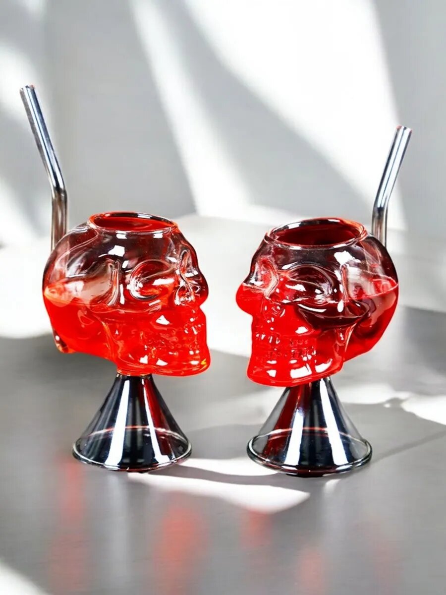 Набор бокалов "Черепа" 450мл, стекло, 2 шт, прозрачный кристалл, для алкогольных и горячих напитков интересное: