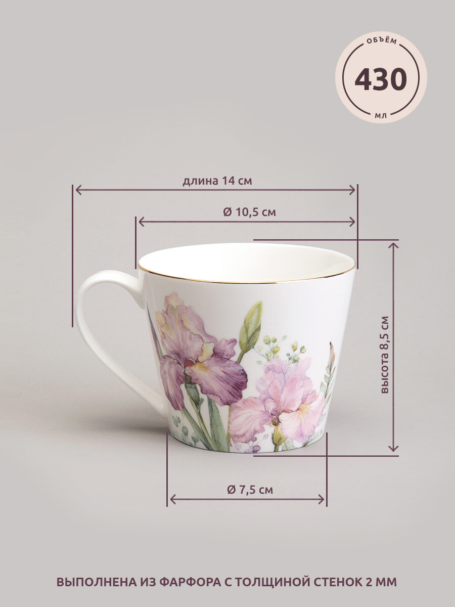 Купить Кружка фарфоровая Lefard "Irises" 450 мл, для горячих напитков